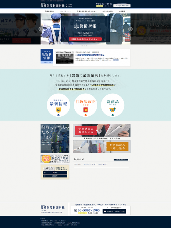 ホームページをリニューアルしました。 | 新着情報|セキュリティ業界の最新情報は警備保障新聞新社